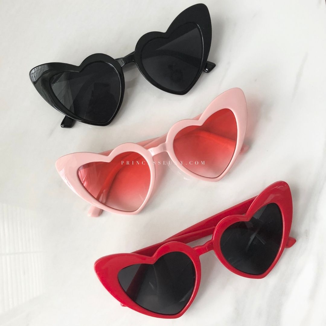Fun and protective heart-shaped plastic sunglasses for women. Match your little girl with the child version which is available here!