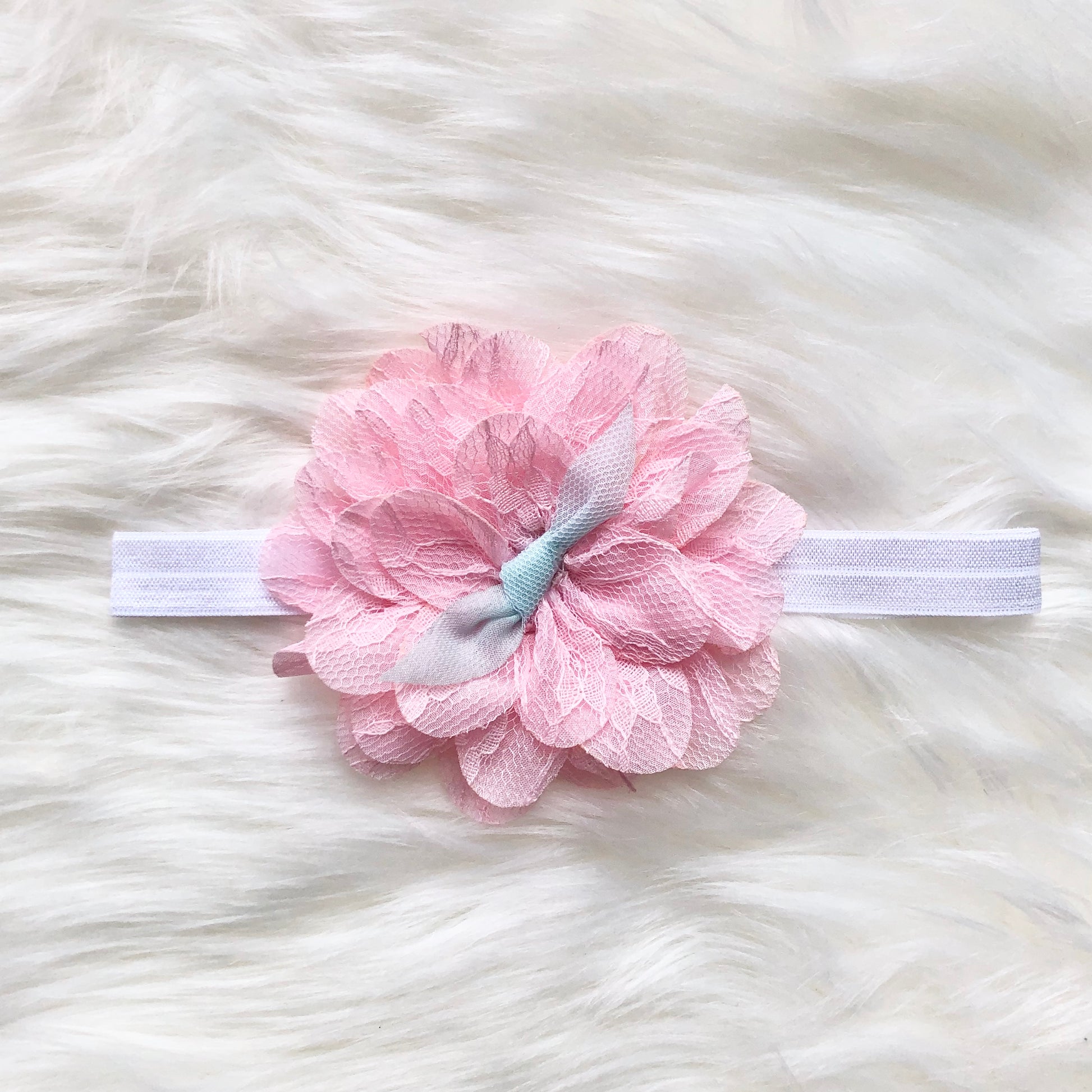 Bold and beautiful flower hairband for babies. Features a pink flower with green mini bow. Great accessory for your little girls outfit or as a gift!