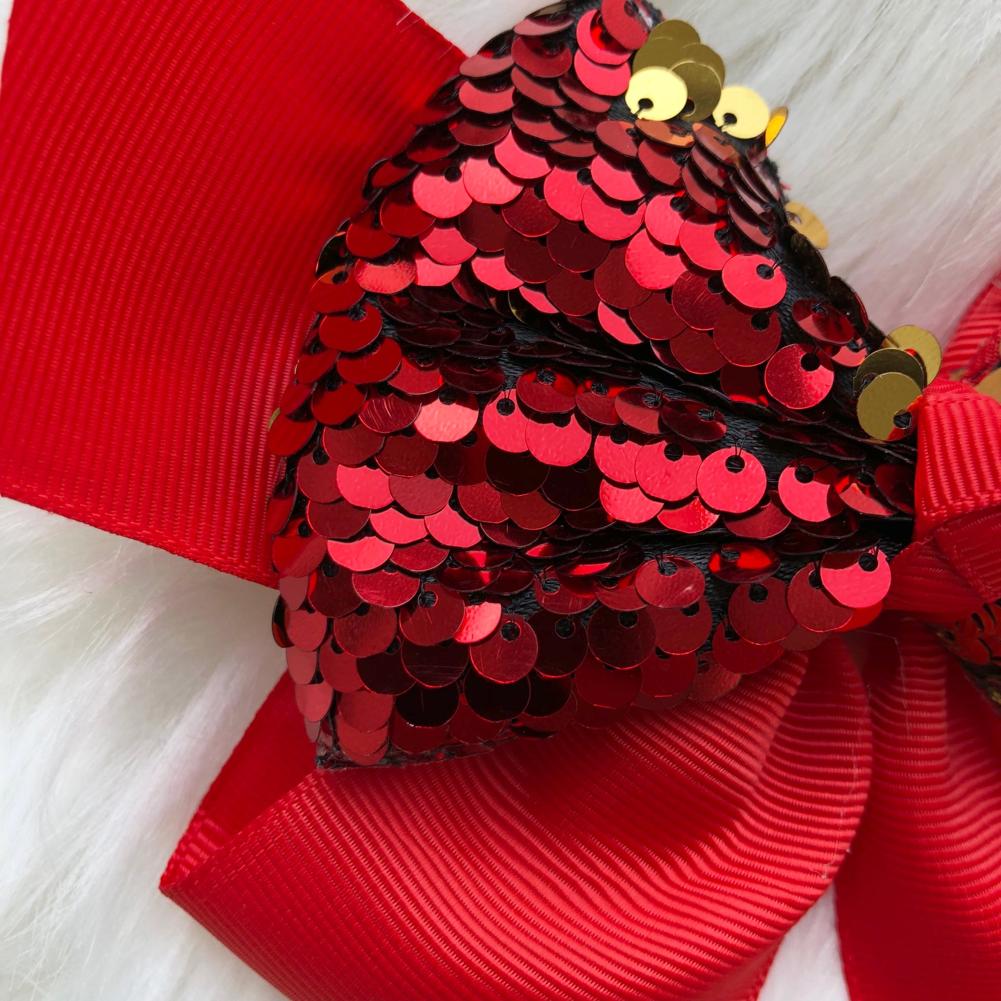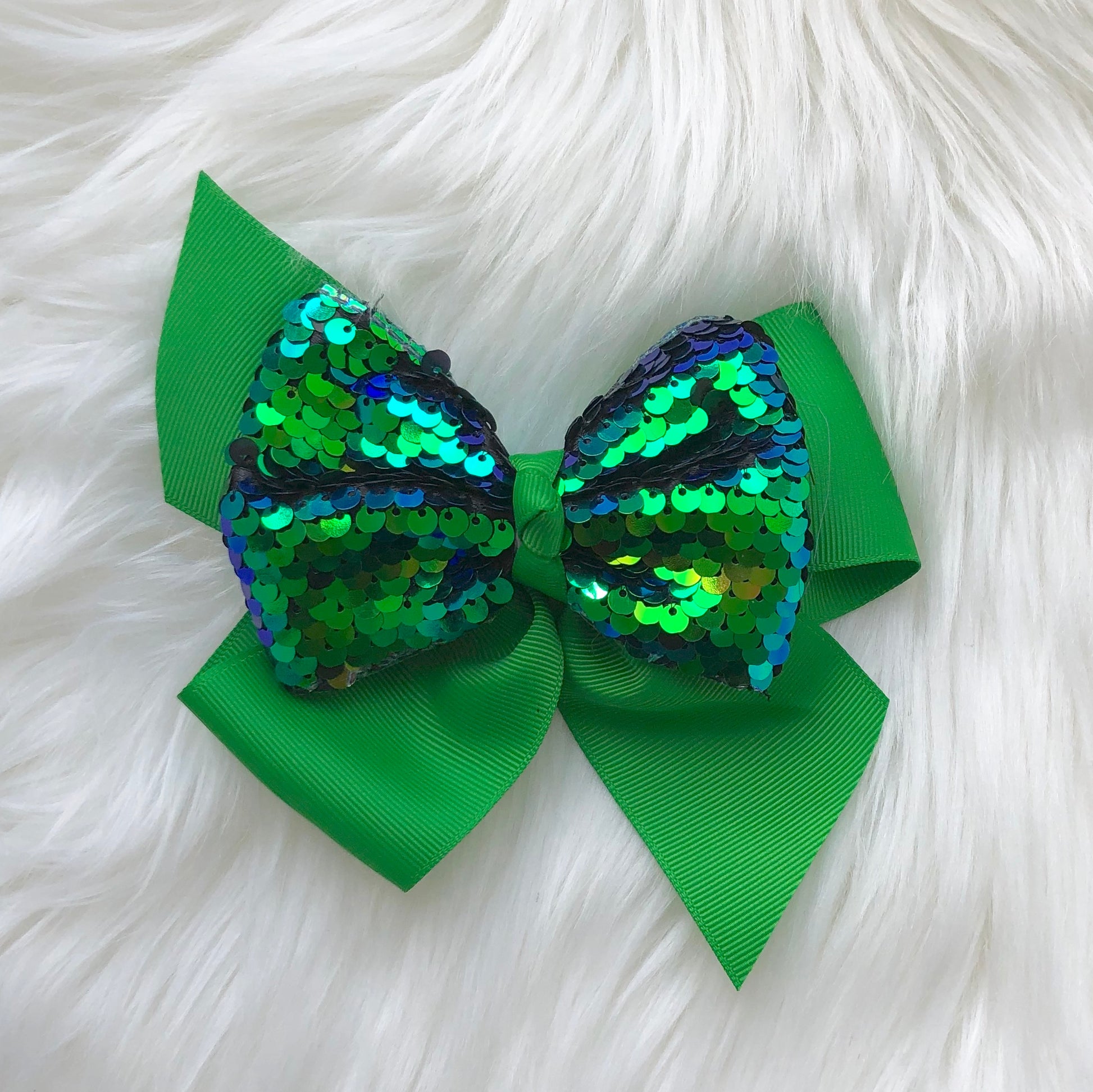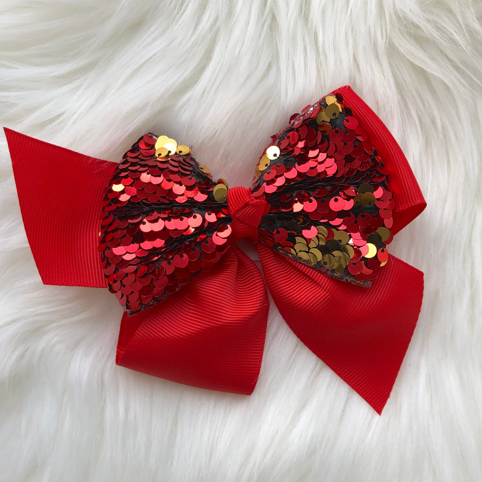Jumbo, glam and sparkly sequin hair bow, with asymmetrical bow! It is so unique and cute. Alligator clip in the back.