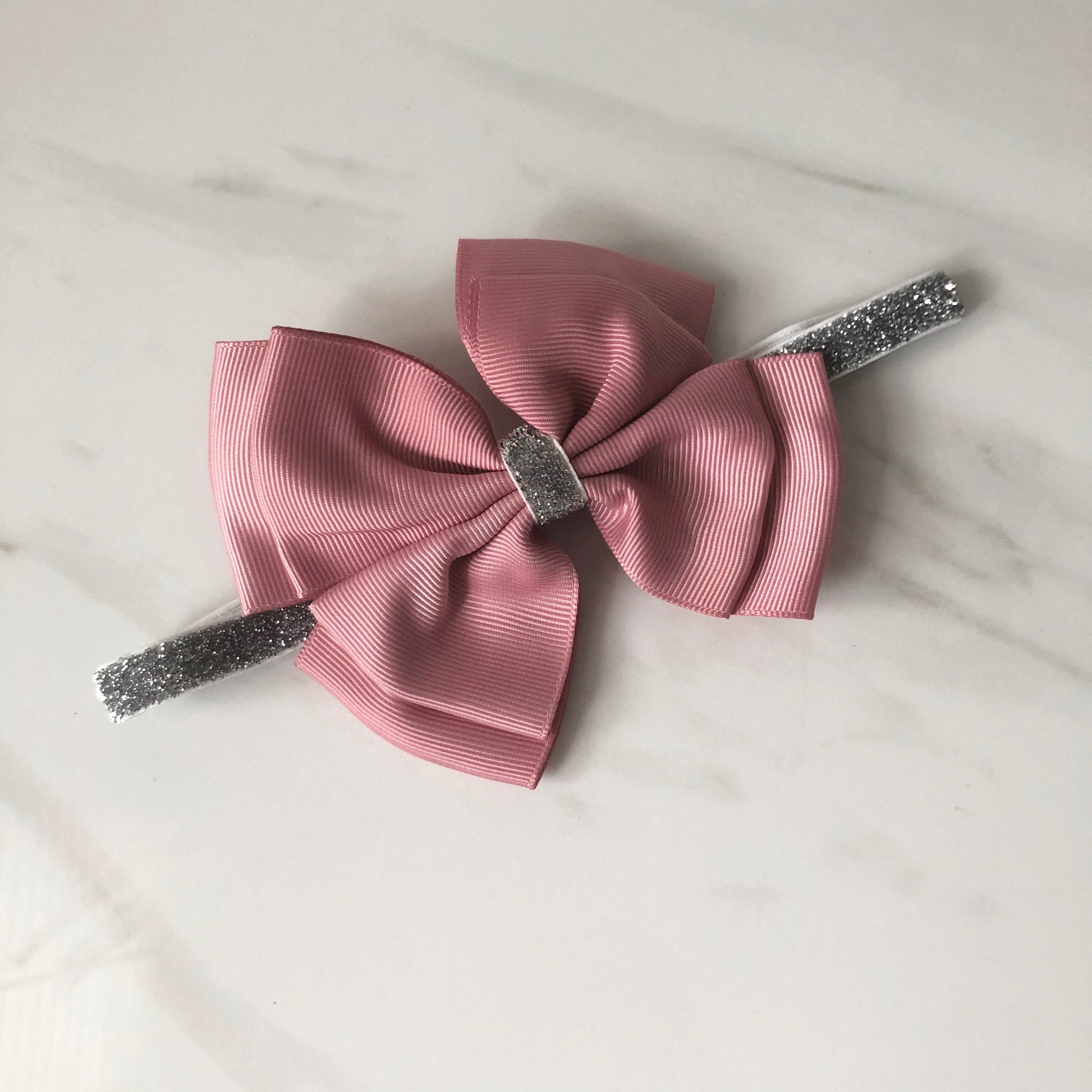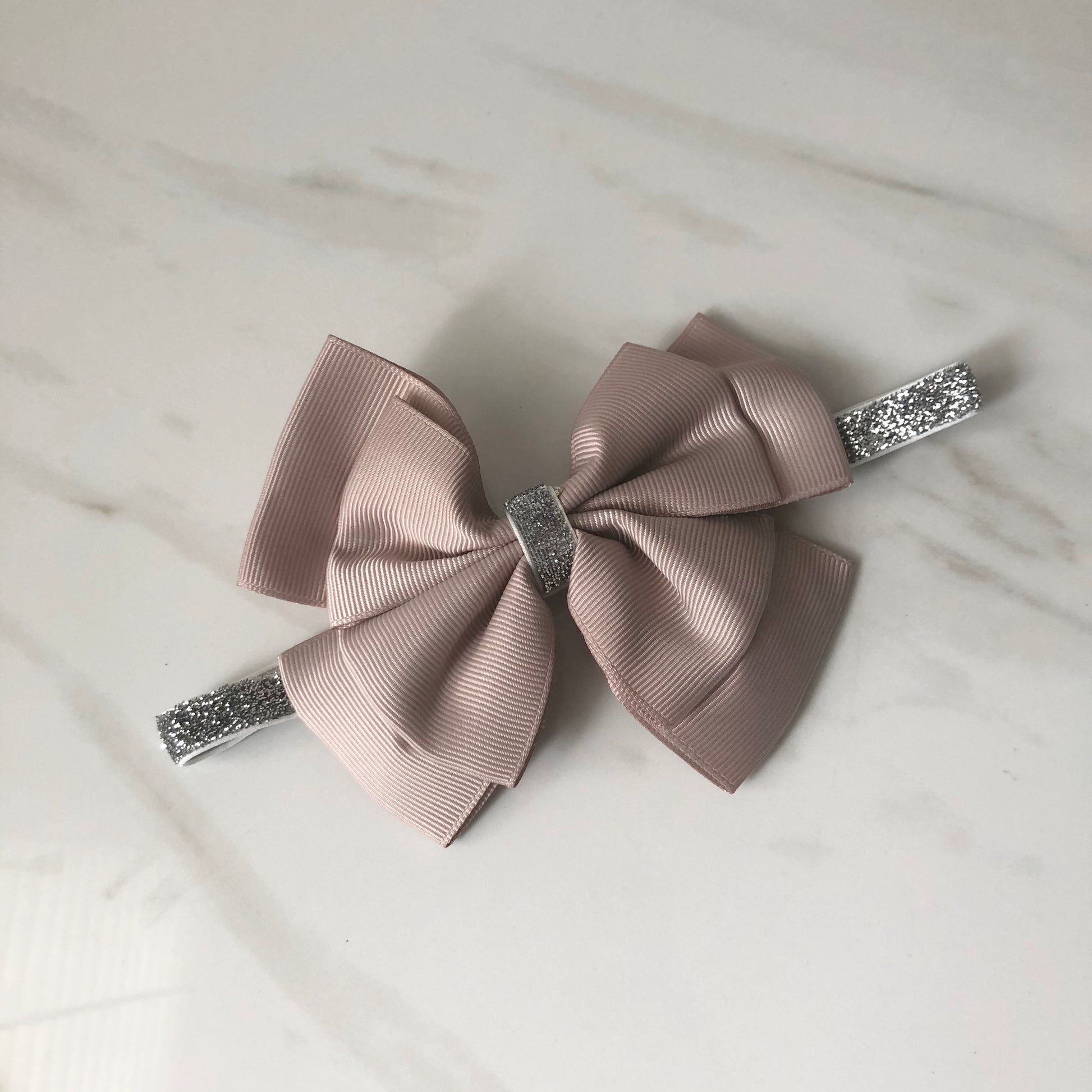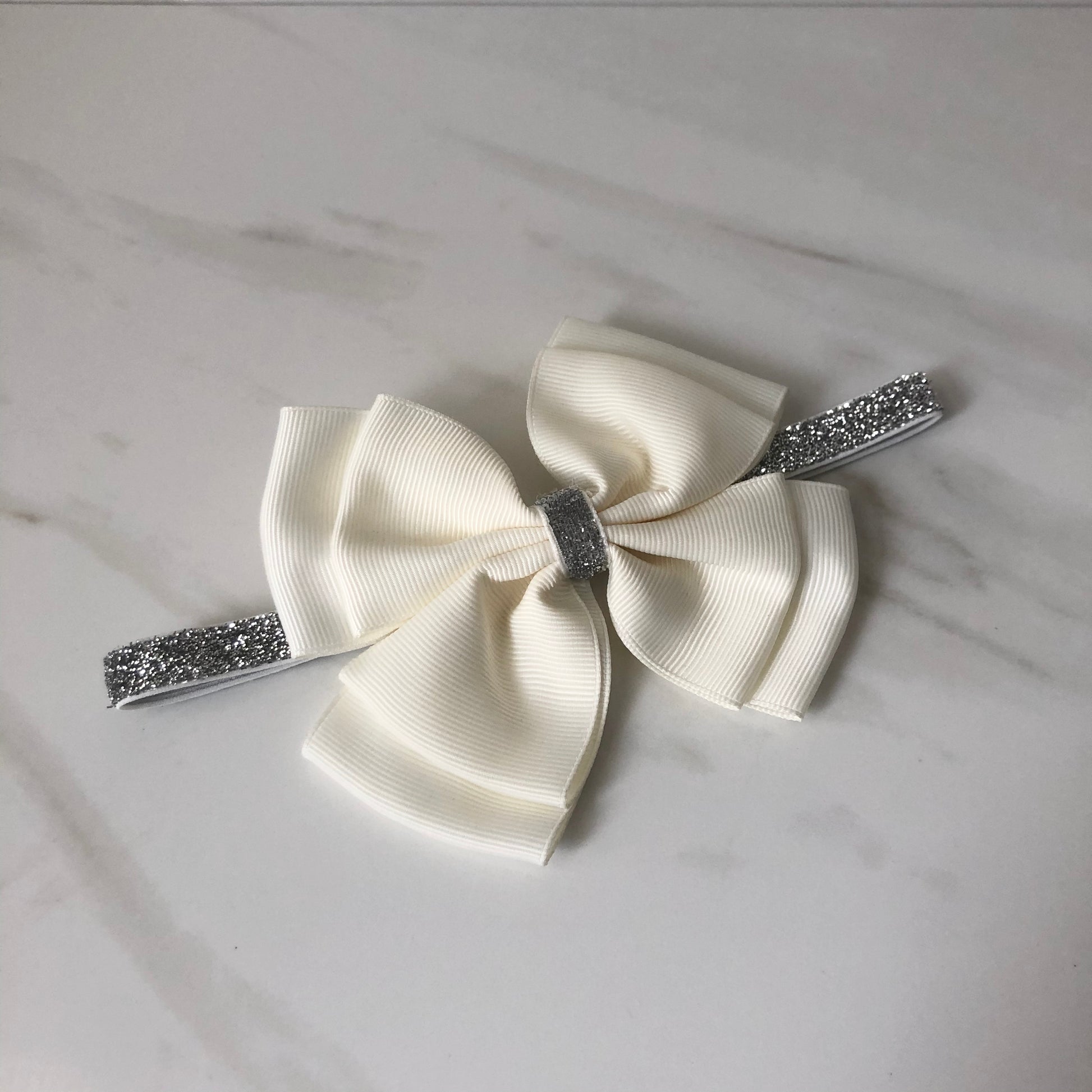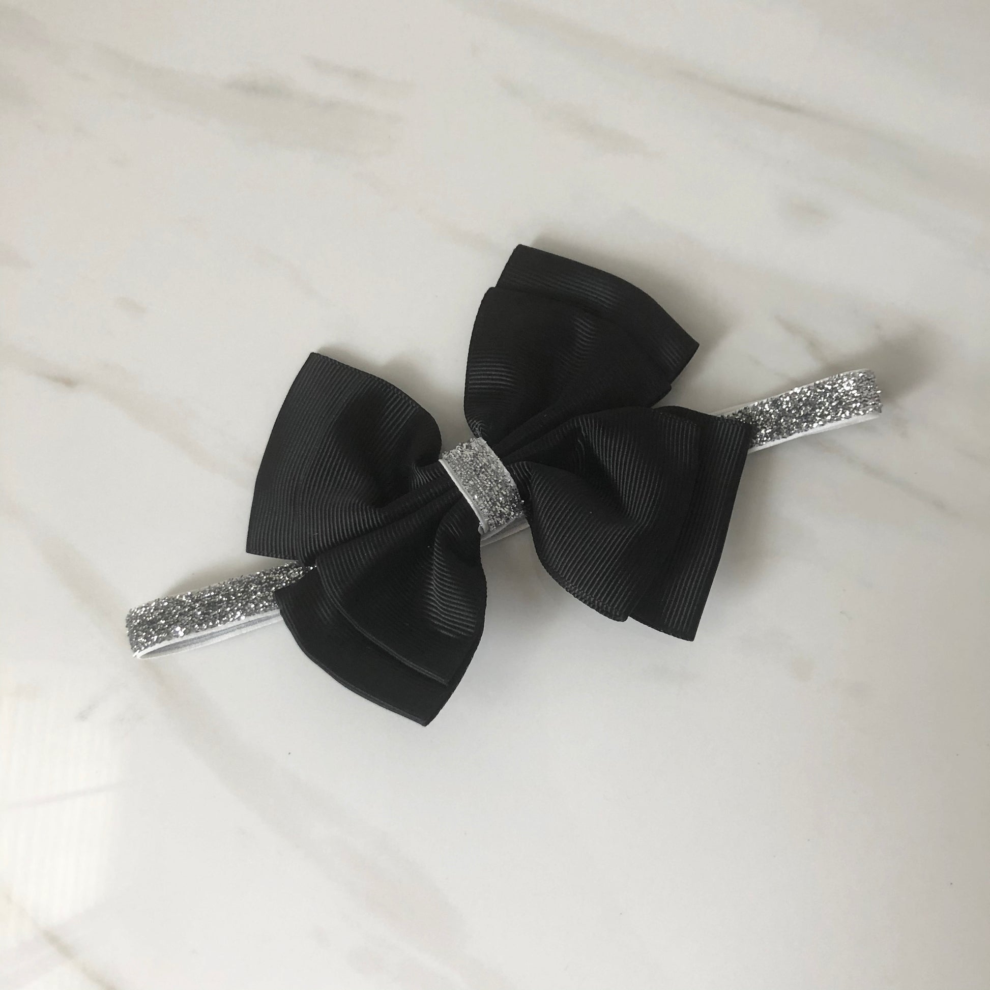 Classy hair bow with sparkle in the middle and on the hairband! Perfect to add glam to a casual or fancy outfit.