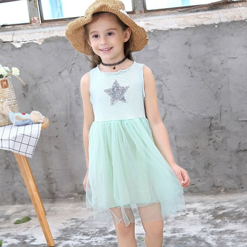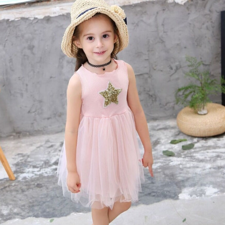 Our Star Party Dress will make any girl shine! The tulle skirt provides an elegant, playful touch, while the shimmering sequinned star catches the eye and sparkles with every move.