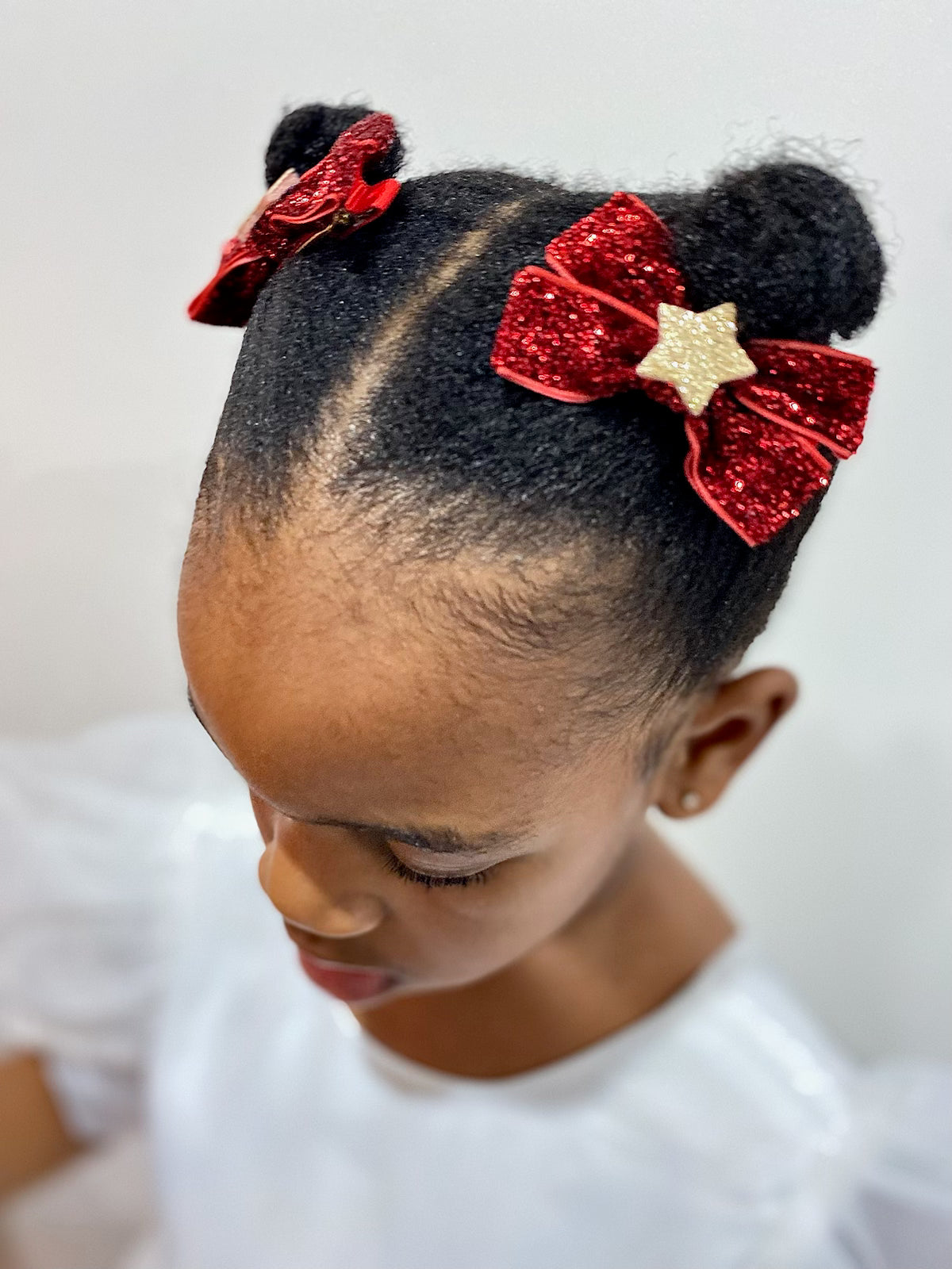 Let your little girl's hair glimmer and shine with our Twinkle Hair Bow! The clips on the bow are lined so they don't snag her hair.